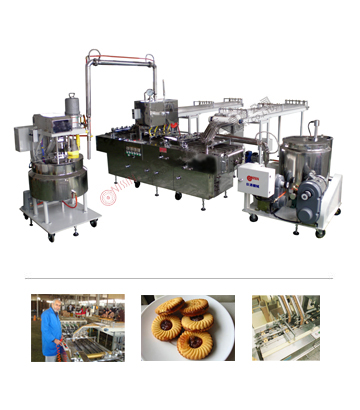 產(chǎn)品特點: 主機采用伺服電機驅(qū)動,性能更穩(wěn)定,定位更精確,運行過程中可動態(tài)調(diào)整。 光電檢測餅干,無餅的情況下不漏奶油,有餅后自動恢復(fù)供料。 可快速拆換的全不銹鋼出料模具,可以處理不同形狀和大小的餅干。 選配轉(zhuǎn)彎供餅裝置,跨越生產(chǎn)線設(shè)計,節(jié)省占地空間。 配備廢料收集系統(tǒng),便于清潔和維護(hù)。 每個奶油桶都擁有獨立的電機。 總功率:7kw 工作電壓:220v/50Hz 外形尺寸:7830*7000*1455mm 凈重:1500kg 生產(chǎn)能力:1000pcs/min 適用餅干范圍:Round:Φ45-70mm Square:(L*W):(45-80)*(45-70)mm